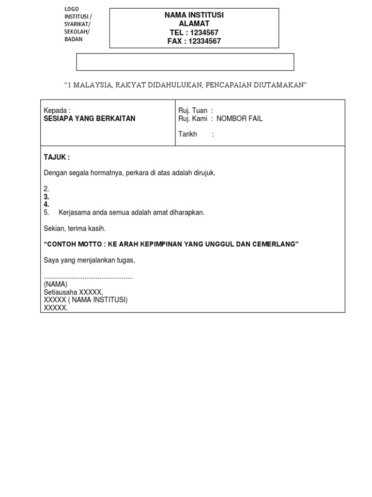 contoh memo syarikat